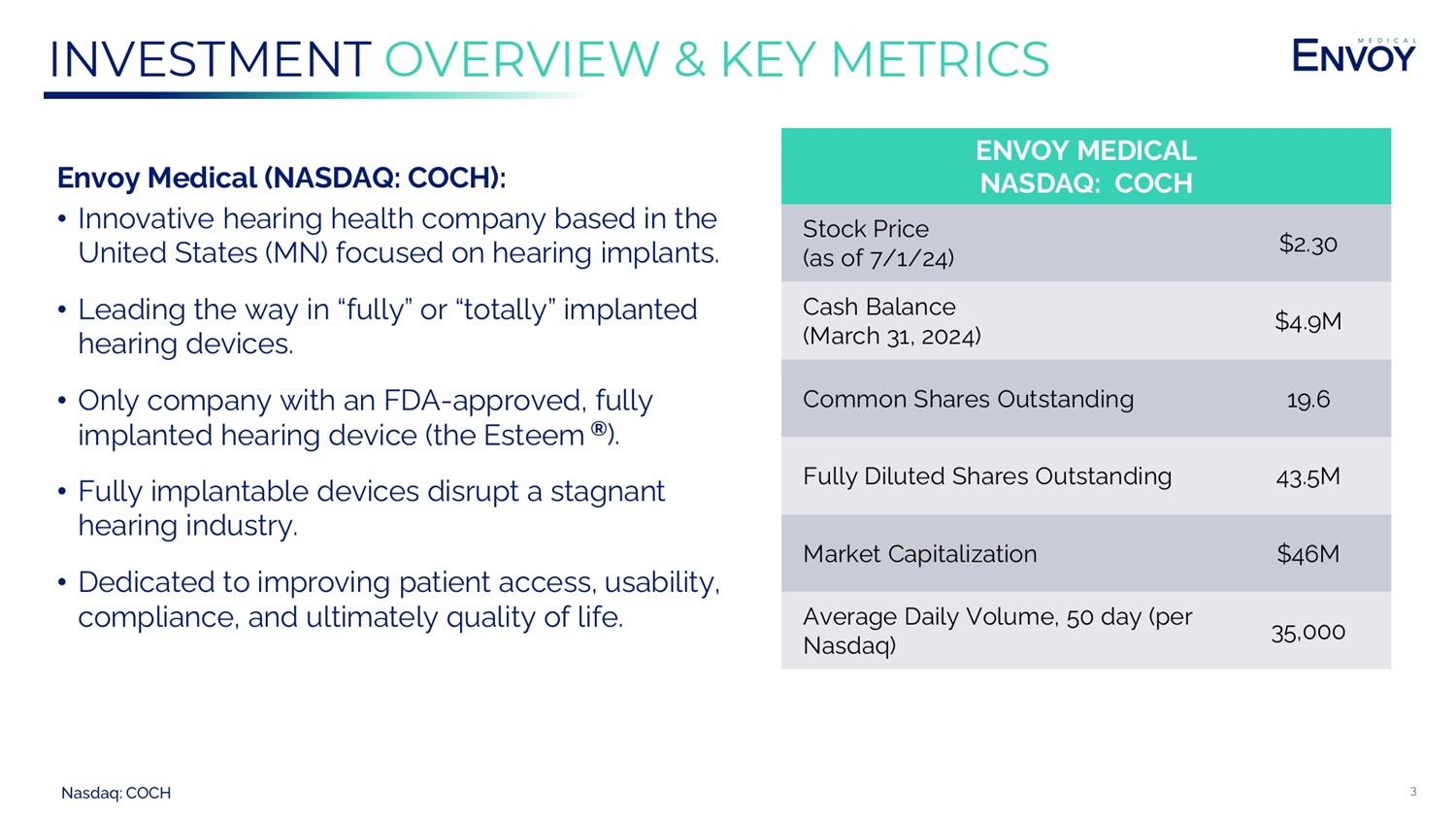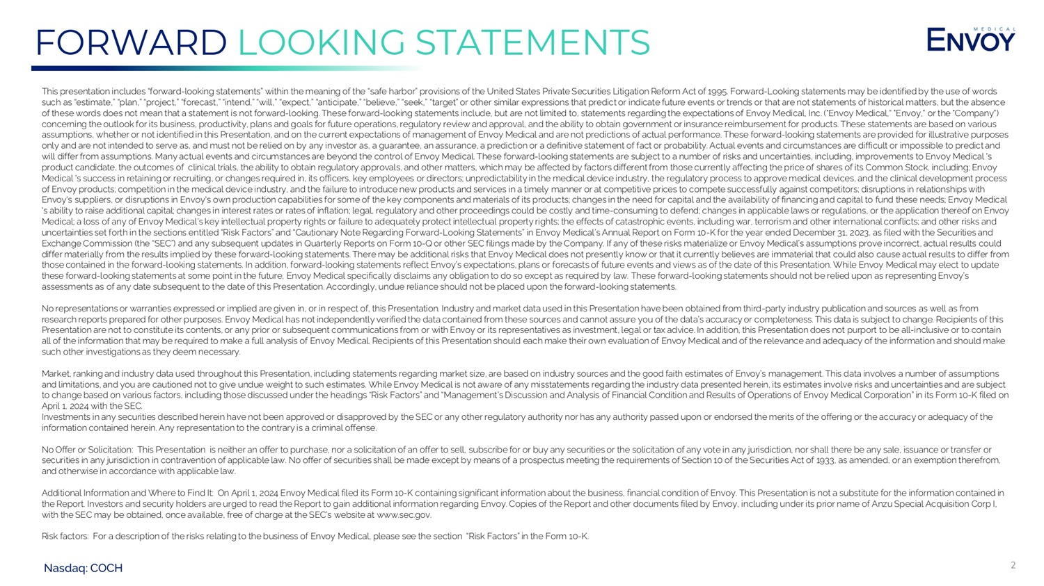 INVESTOR PRESENTATION July 2024 www.envoymedical.com NASDAQ: COCH Hear for Life