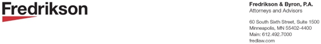 OPINION OF FREDRIKSON & BYRON, P.A.