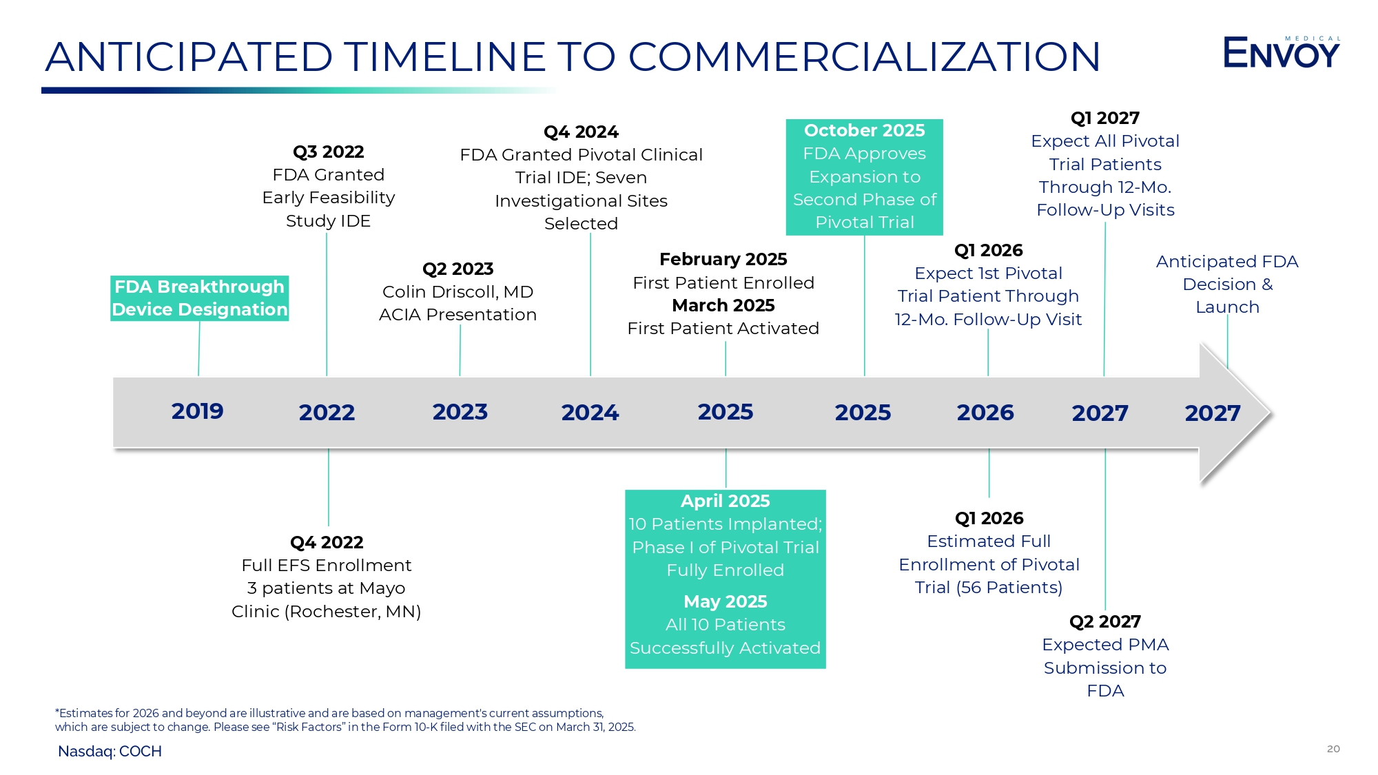 Nasdaq: COCH 25 ANTICIPATED MILESTONES & CORPORATE PRIORITIES ‡ ƬƬǼƏǣȅ Š !X ¨ǣɮȒɎƏǼ ÁȸǣƏǼ 0ȇȸȒǼǼȅƺȇɎ ‡ RƏǼǔɯƏɵ ȵȒǣȇɎ Ȓȇ ƺȇȸȒǼǼȅƺȇɎ ٫ ȅǣƳٖǼƏɎƺ (ƺƬƺȅƫƺȸ ‡ 0ȇȸȒǼǼȅƺȇɎ ƬȒȅȵǼƺɎǣȒȇ ٢ƏǼǼ ȵƏɎǣƺȇɎɀ ǣȅȵǼƏȇɎƺƳ٣ ٫ ȅǣƳ ٮ ª אאה ‡ XȅȵǼƏȇɎ ƏƬɎǣɮƏɎƺƳ ǔȒȸ ƏǼǼ דה ɎȸǣƏǼ ɀɖƫǴƺƬɎɀ ٫ ǼƏɎƺ ª אאה ‡ k…n ȵȸƺɀƺȇɎƏɎǣȒȇ ƏɎ Ɏǝƺ ȅƺȸǣƬƏȇ !ȒƬǝǼƺƏȸ XȅȵǼƏȇɎ ǼǼǣƏȇƬƺ !ȒȇǕȸƺɀɀ ٫ xƏɵ אאה ‡ ¨ƏɎǣƺȇɎ ƬȒǝȒȸɎ ɖȵƳƏɎƺɀ ǔȒȸ ٮ ً ב ٮ ً ה ٮ ƏȇƳ א ٮ ȅȒȇɎǝ ɮǣɀǣɎɀ ٫ ɎǝȸȒɖǕǝȒɖɎ אאה ‡ ȅƺȸǣƬƏȇ ƬƏƳƺȅɵ Ȓǔ …ɎȒǼƏȸɵȇǕȒǼȒǕɵ Rz³ ȇȇɖƏǼ xƺƺɎǣȇǕ ٫ …ƬɎȒƫƺȸ אאה ‡ ƳƳǣɎǣȒȇƏǼ ȵƏɎƺȇɎ ǣɀɀɖƏȇƬƺɀ ٫ ɎǝȸȒɖǕǝȒɖɎ אאה ‡ !ȒȅȵǼƺɎǣȒȇ Ȓǔ א ٮ ȅȒȇɎǝ ɮǣɀǣɎ ȵȒɀɎ ƏƬɎǣɮƏɎǣȒȇ ǔȒȸ ƏǼǼ דה ɀɖƫǴƺƬɎɀ ٫ ª אאו ‡ ƬƬǼƏǣȅ ۱ !X ¨x ɀɖƫȅǣɀɀǣȒȇ ɎȒ I( ٫ ª א אאו ‡ ¨ȒɎƺȇɎǣƏǼ ǔȒȸ 0ɀɎƺƺȅ Š ȸƺǣȅƫɖȸɀƺȅƺȇɎ ɖȵƳƏɎƺɀ ٫ ȒȇǕȒǣȇǕ ƺǔǔȒȸɎ * CAUTION — Investigational device. Limited by Federal (or United States) law to investigational use.