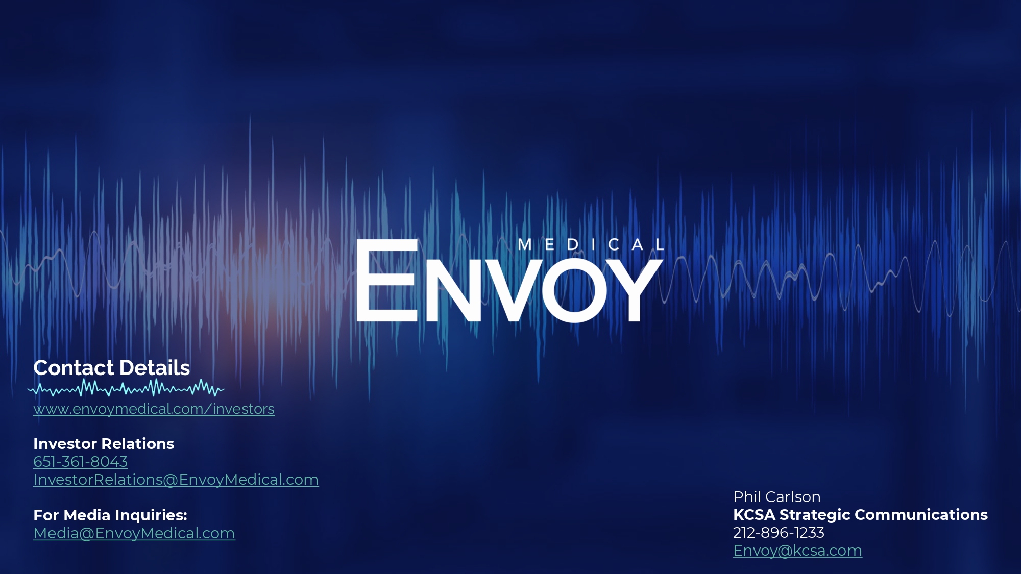 Contact Details www.envoymedical.com/investors Investor Relations 651 - 361 - 8043 InvestorRelations@EnvoyMedical.com For Media Inquiries: Media@EnvoyMedical.com Phil Carlson KCSA Strategic Communications 212 - 896 - 1233 Envoy@kcsa.com